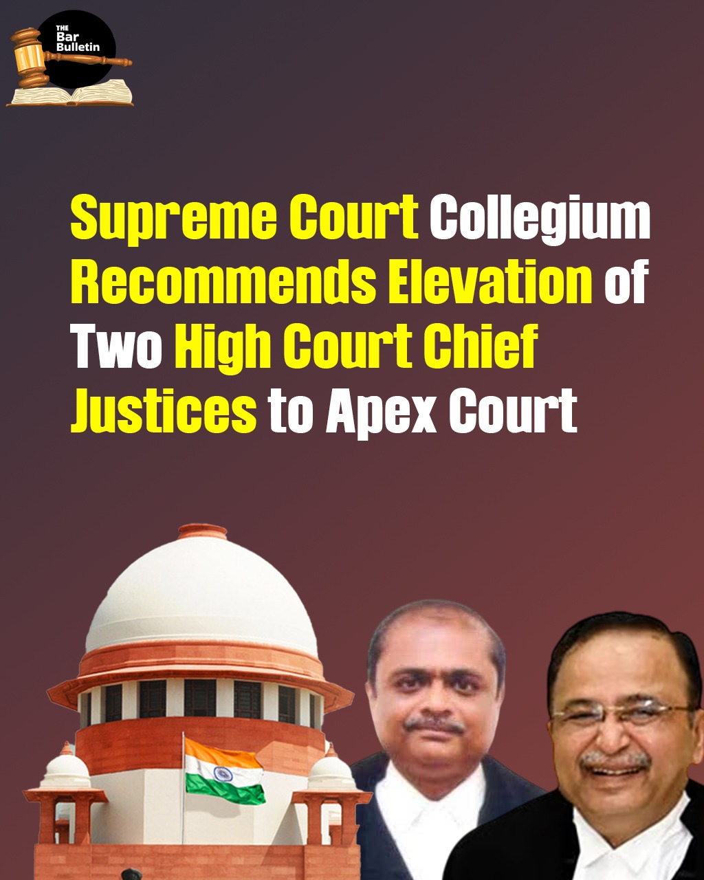 The Supreme Court Collegium, in its meeting held on August 25, 2025, recommended the elevation of two Chief Justices of
