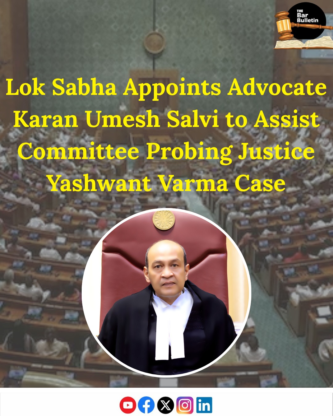 Lok Sabha Appoints Advocate Karan Umesh Salvi to Assist Committee Probing Justice Yashwant Varma case October 21, 2025 Read More »