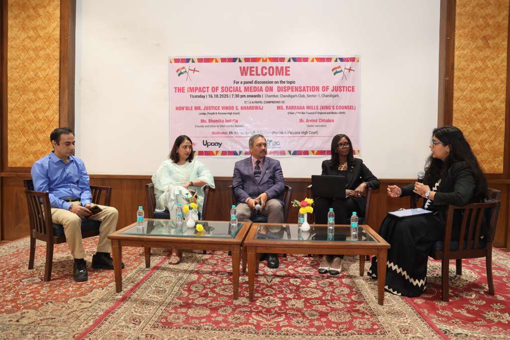 A thought-provoking panel discussion on “The Impact of Social Media on Dispensation of Justice” was held at the Chandigarh Club, Sector 1, on Thursday evening. The event brought together eminent voices from the judiciary, legal fraternity, and media to explore how social media is influencing judicial perception, accountability, and the integrity of the justice system.