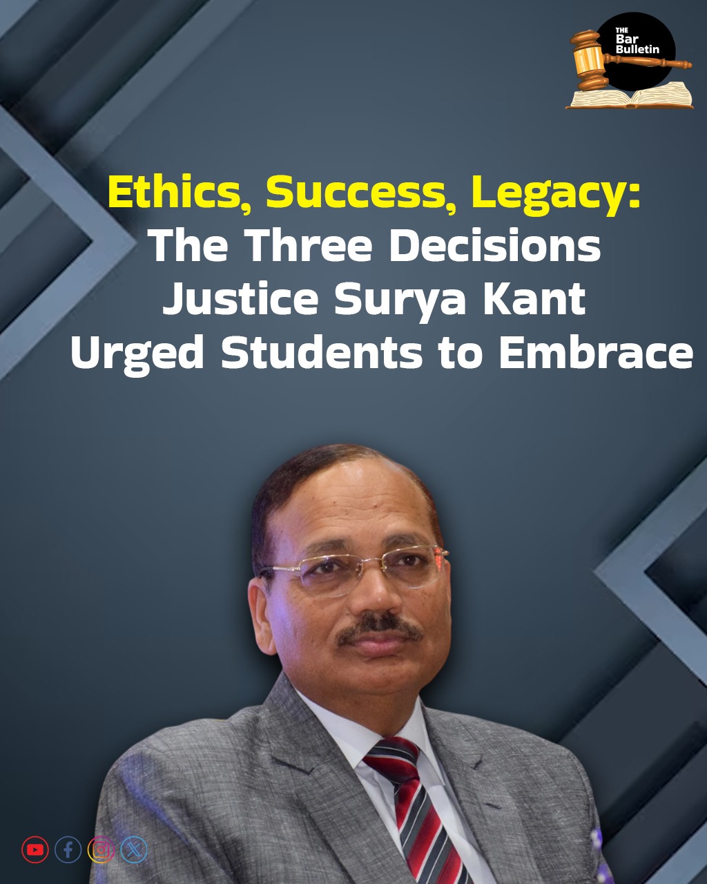 Justice Surya Kant’s speech was anchored on “Three Decisions That Will Define Your Legal Career”: