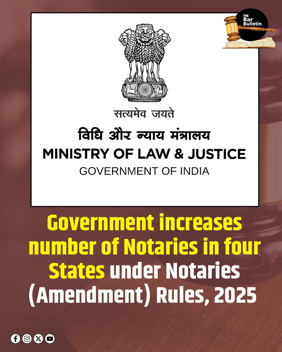 The Department of Legal Affairs, Ministry of Law and Justice, has issued the Notaries (Amendment) Rules, 2025 through G.S.R. 763(E) dated 17 October 2025, further amending the Notaries Rules, 1956 under the powers conferred by Section 15 of the Notaries Act, 1952 (53 of 1952).
