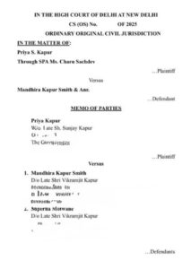 As per information received the civil suit, presently under defects, seeks protection of Kapur’s peaceful possession of a Kapur Family’s residential property at Rajokri, New Delhi, where she claims to be residing as the sole lawful lessee. She has also sought restraint orders against the defendants from publishing or circulating allegedly defamatory content on social media and other platforms, along with directions for removal of existing online material.