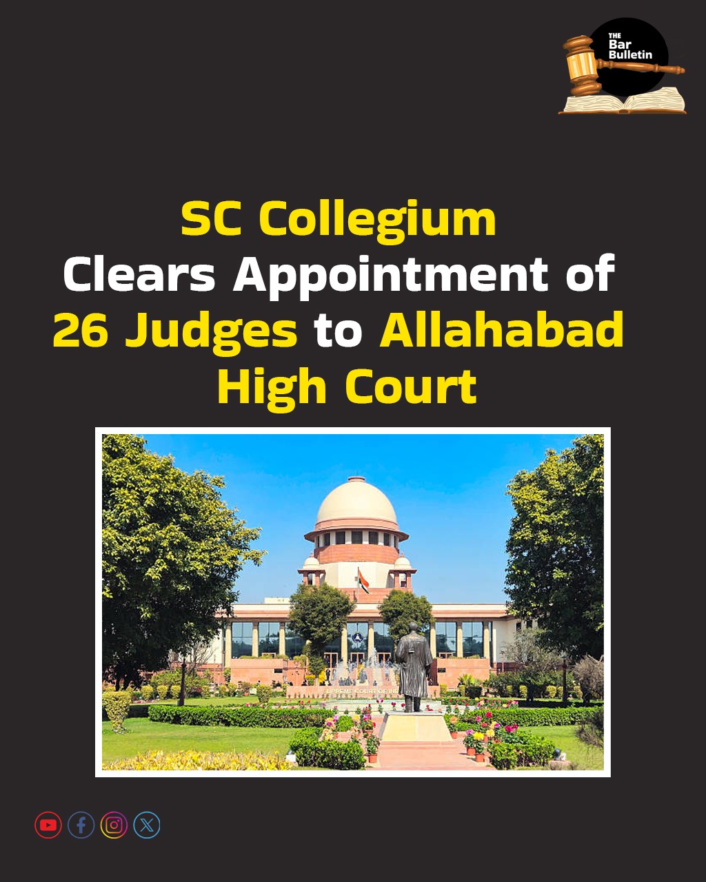 In its meeting held on 1 September 2025, the Supreme Court Collegium approved the appointment of 26 new judges to the High Court of Judicature at Allahabad.