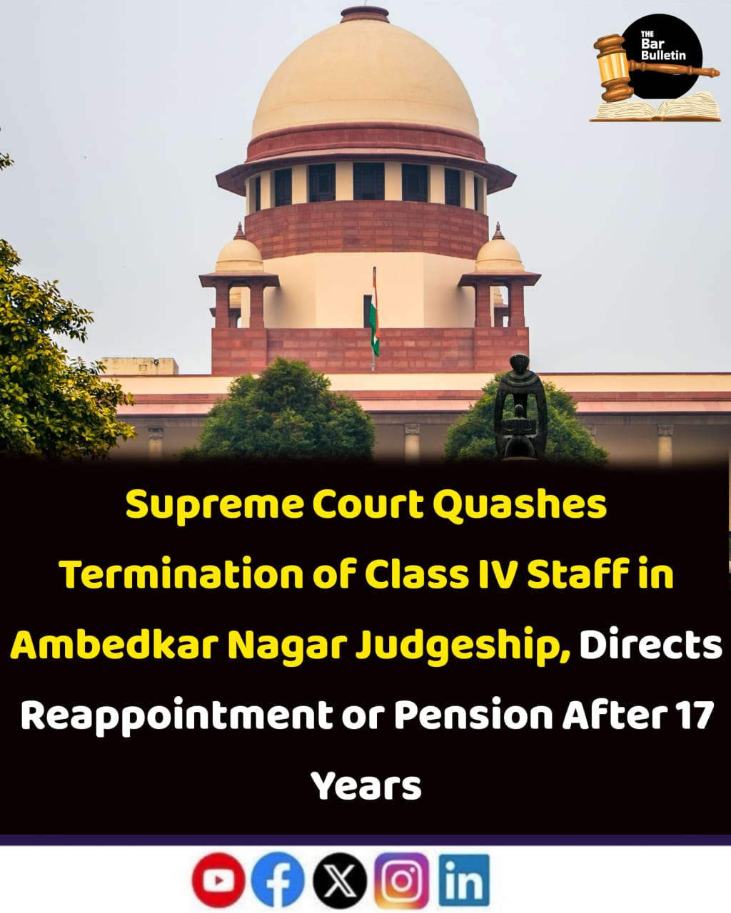 The Supreme Court has set aside the termination of four Class IV employees of the Ambedkar Nagar District Judgeship, whose services were ended in 2008 on the ground that their appointments exceeded the number of advertised vacancies. The Court found the termination unjustified and directed their reappointment or grant of minimum pension, depending on their age and eligibility.